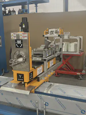 We wrześniu do wyposażenia naszego laboratorium została zakupiona nowa nawijarka czteroosiowa MLW 4 firmy Mikrosam. Urządzenie jest wyposażone w system kontroli i regulacji siły naciągu, co umożliwia precyzyjne sterowanie procesem wytwarzania struktur kompozytowych. Nawijarka posiada zintegrowany system kontroli i monitorowania procesu produkcyjnego, pozwalający na rejestrację parametrów technologicznych oraz ich bieżącą analizę. Nowa aparatura znacząco poszerza możliwości badawcze laboratorium w zakresie projektowania, wytwarzania i analizy kompozytowych struktur nośnych, w szczególności zbiorników wysokociśnieniowych wytwarzanych metodą nawijania włókna. Jednocześnie nawijarka będzie wykorzystywana w działalności dydaktycznej, w tym w realizacji prac dyplomowych i doktorskich oraz w kształceniu studentów w obszarze nowoczesnych technologii wytwarzania struktur kompozytowych.