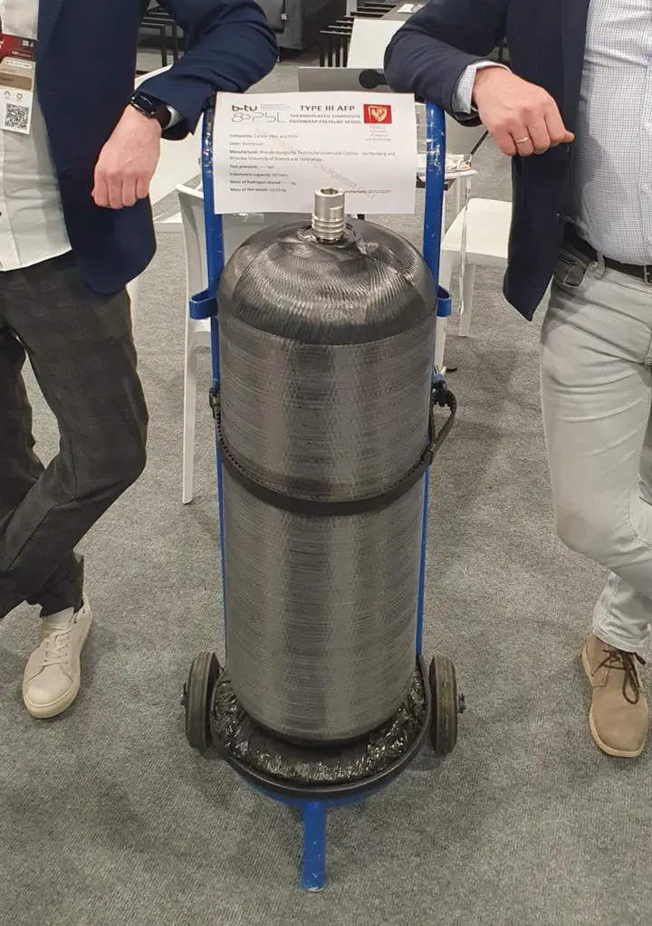 Podczas wydarzenia nasze laboratorium zaprezentowało m.in. kompozytowy zbiornik wysokociśnieniowy typu III, wykonany metodą AFP ze współpracą z BTU Cottbus będący przykładem nowoczesnych rozwiązań stosowanych w konstrukcjach ciśnieniowych.